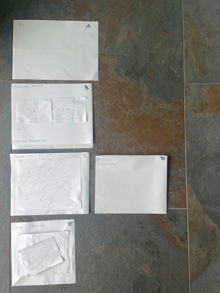 - I like the size of Lucy Roses ‘no words left’ book?, which is slightly bigger than A5 landscape, but having measured it out, though cheaper A5 is too small for my images.