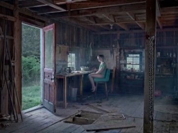 The images concentrate on one, to three figures, involved in an enigma or caught in a blank or reflective state, hinting at invisible challenges, though what these challenges are, and what fate awaits these blank figures, are left to our imagination. In The Haircut (2014) Crewdson places the characters in the heart of the forest as with many of the images: