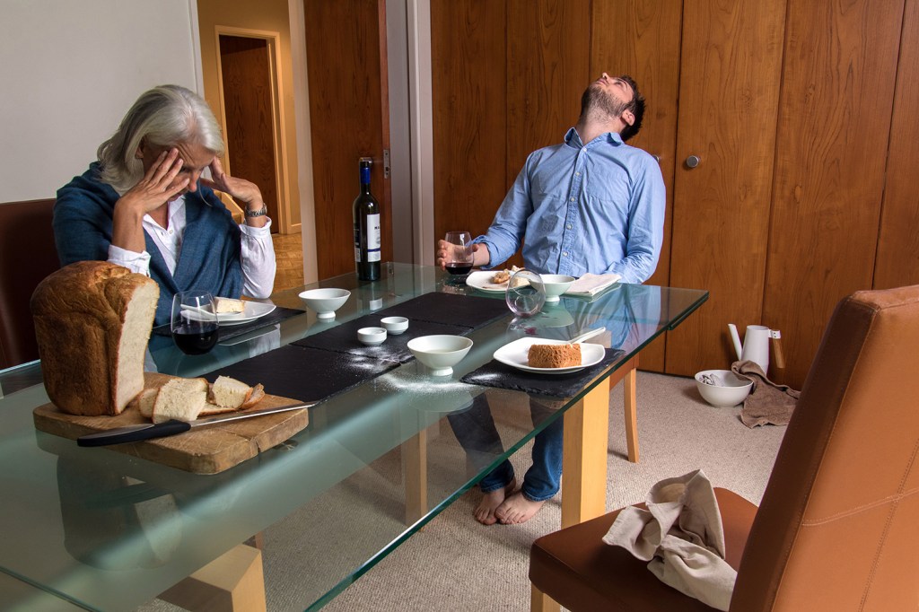 I experimented with Tableaux in my own work during my context and narrative course for assignment 5 “making it up” (South, 2017). I constructed it to express a personal reflection on stressful mealtimes, following a spoiled meal I often resolve never again to cook a special meal, thus the title “The Last Supper” came to mind. I researched Da Vinci’s version of painting, along with other’s and thought it would be interesting to borrow some of its visual symbolism, motifs, and choreography to add interest and emphasis to my modern tableaux- vivant.
