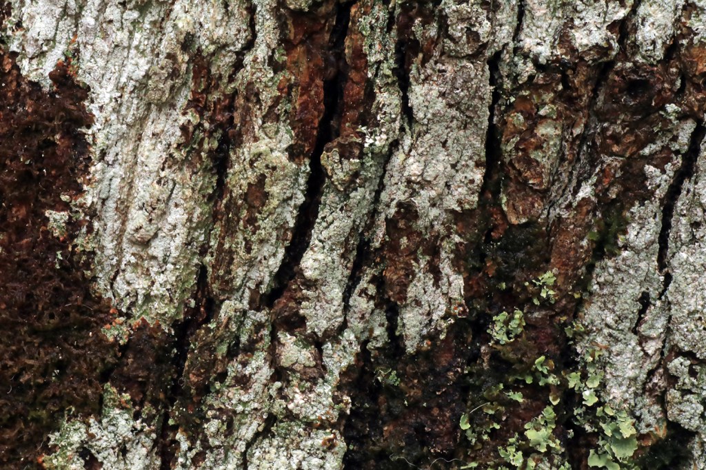 On twigs epiphytic lichens will quickly colonise new growth on branches but must compete with mosses and algae. There are three types of lichen, Crustose which looks like a crust on a bark, such as this one on a deciduous tree: