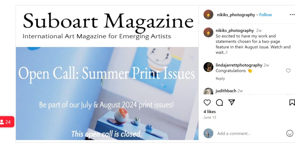I will post the good news on Instagram soon and wait to see the online exhibition in October.