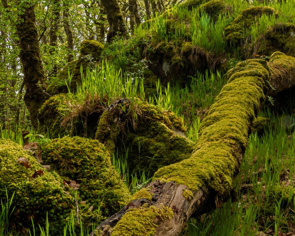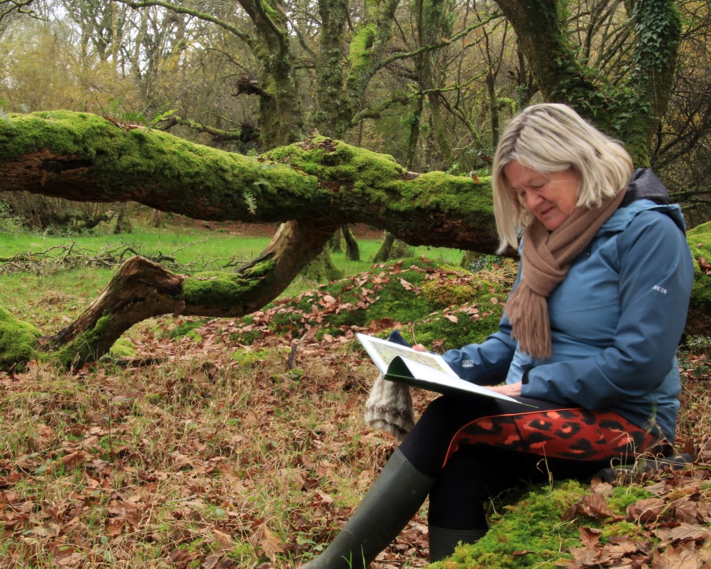 Viewing the 1st image, and looking around herself at the woodland, she reflected how diverse the woodland is and it yet adapts over time; conversely that humans seem resistant to change. Reading on she commented on the layering there is in the words and how it draws her into the images.