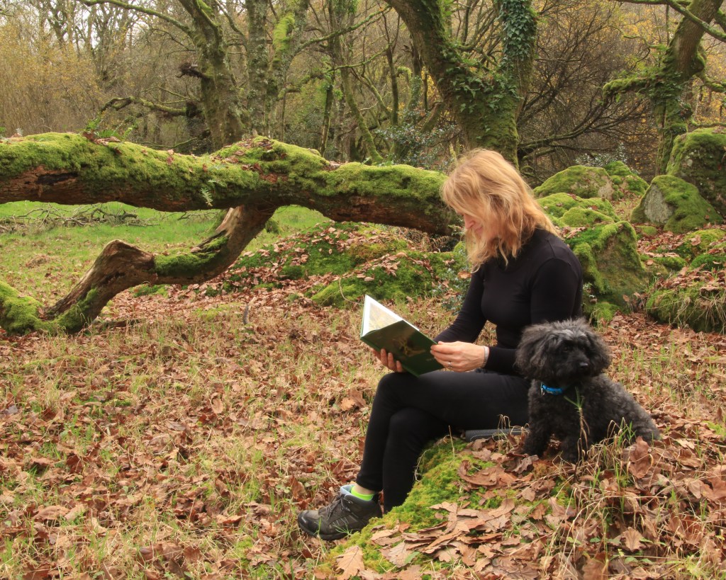 As sat in the woodland the leaves fell around us. Rachel read the book to the end of the ‘community’ section before asking me the background. She then commented that the poetry made her feel sad.