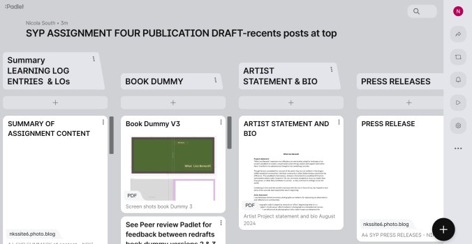 Making my dummy book for assignment 4 gave me more insight into publishing, especially self publishing, and helped me to frame my questions to put to those in the industry for my primary research.